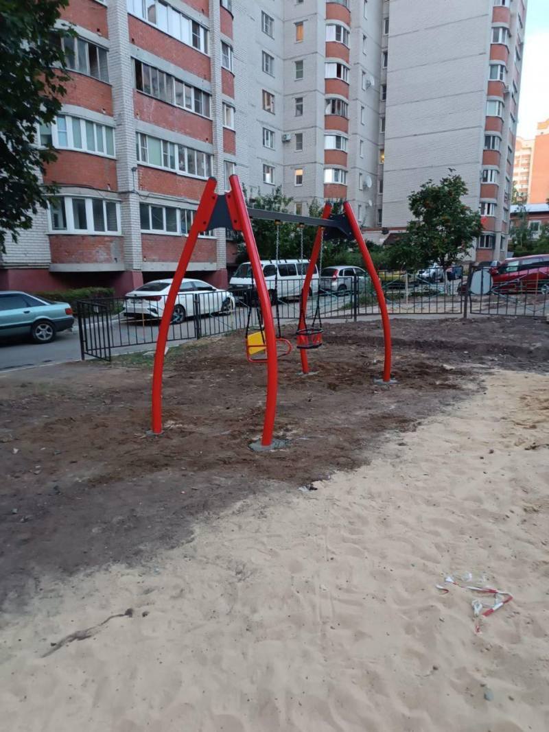 Установка детских качелей возле новостройки 2024